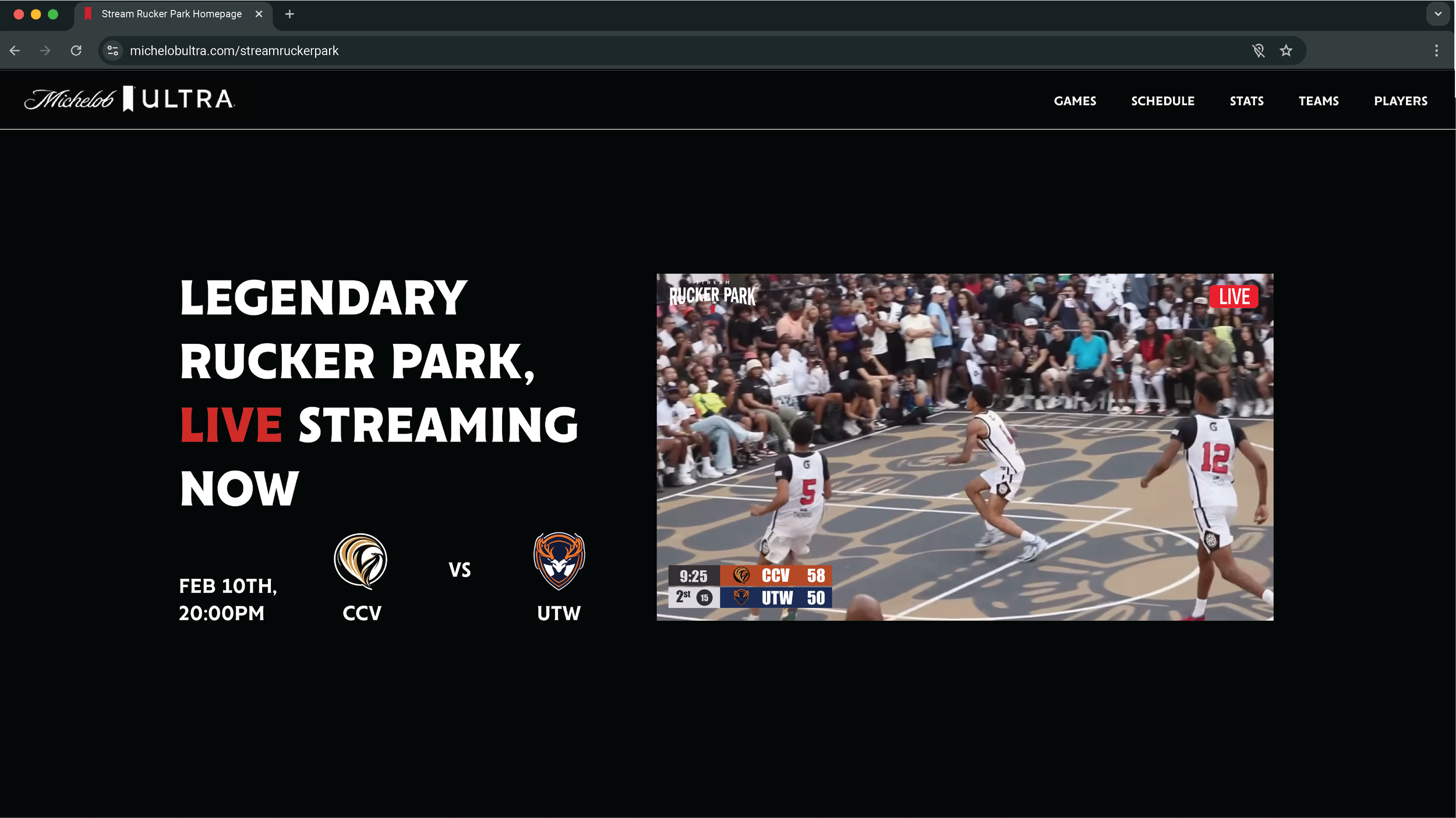 Stream Rucker Park is a 24/7 livestream that brings visibility to amateur street basketball at Harlem’s iconic Rucker Park.